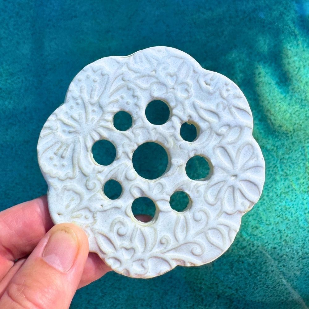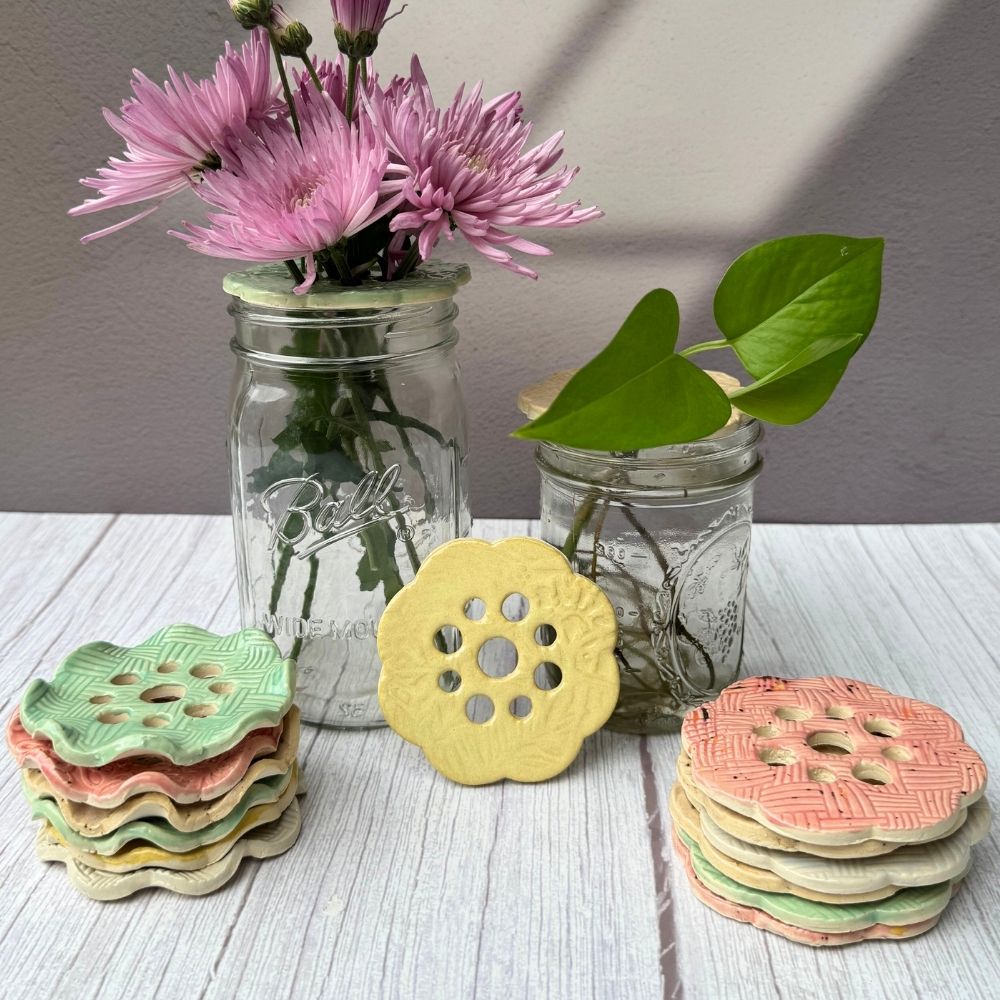 Turn any jar into a stylish vase or propagation station with this flower frog. Hand-crafted in Australia, in various textures and is available in a range of colours.